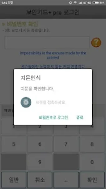 설치 중에, 이 앱은 다음 권한을 요청합니다: 지문 인식, 보안 카드 코드 인식을 위한 카메라 접근, 데이터 백업 및 복구를 위한 SD 카드 접근, 앱 업데이트를 확인하기 위한 네트워크 접근.